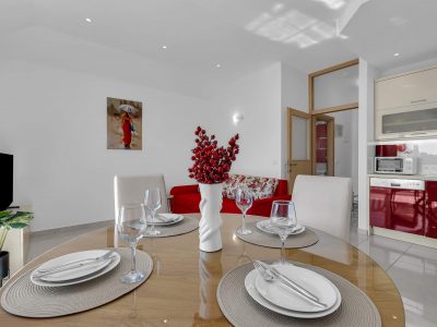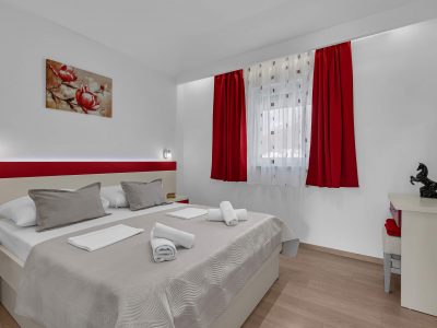 Apartman A5 *** – nalazi se na drugom katu. Sastoji se od jedne spavaće sobe s bračnim krevetom. U dnevnom boravku nalazi se kauč na razvlačenje na kojem se mogu udobno smjestiti još dvoje starije djece. Uz spavaću sobu i dnevni boravak, apartman ima modernu, potpuno opremljenu kuhinju (perilica za posuđe i dr.), blagovaonicu, potpuno opremljeno kupatilo te veliki balkon površine 9 m².