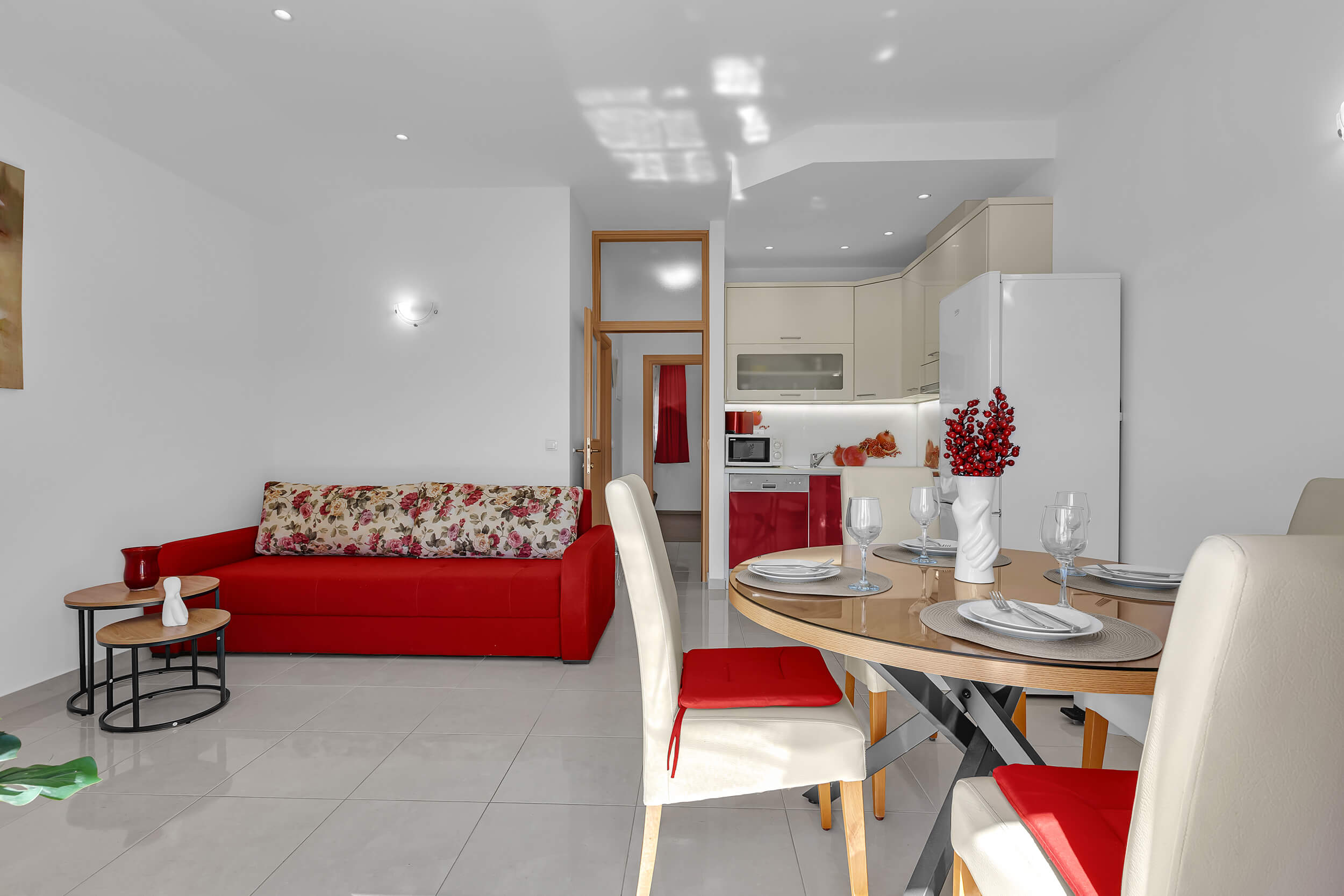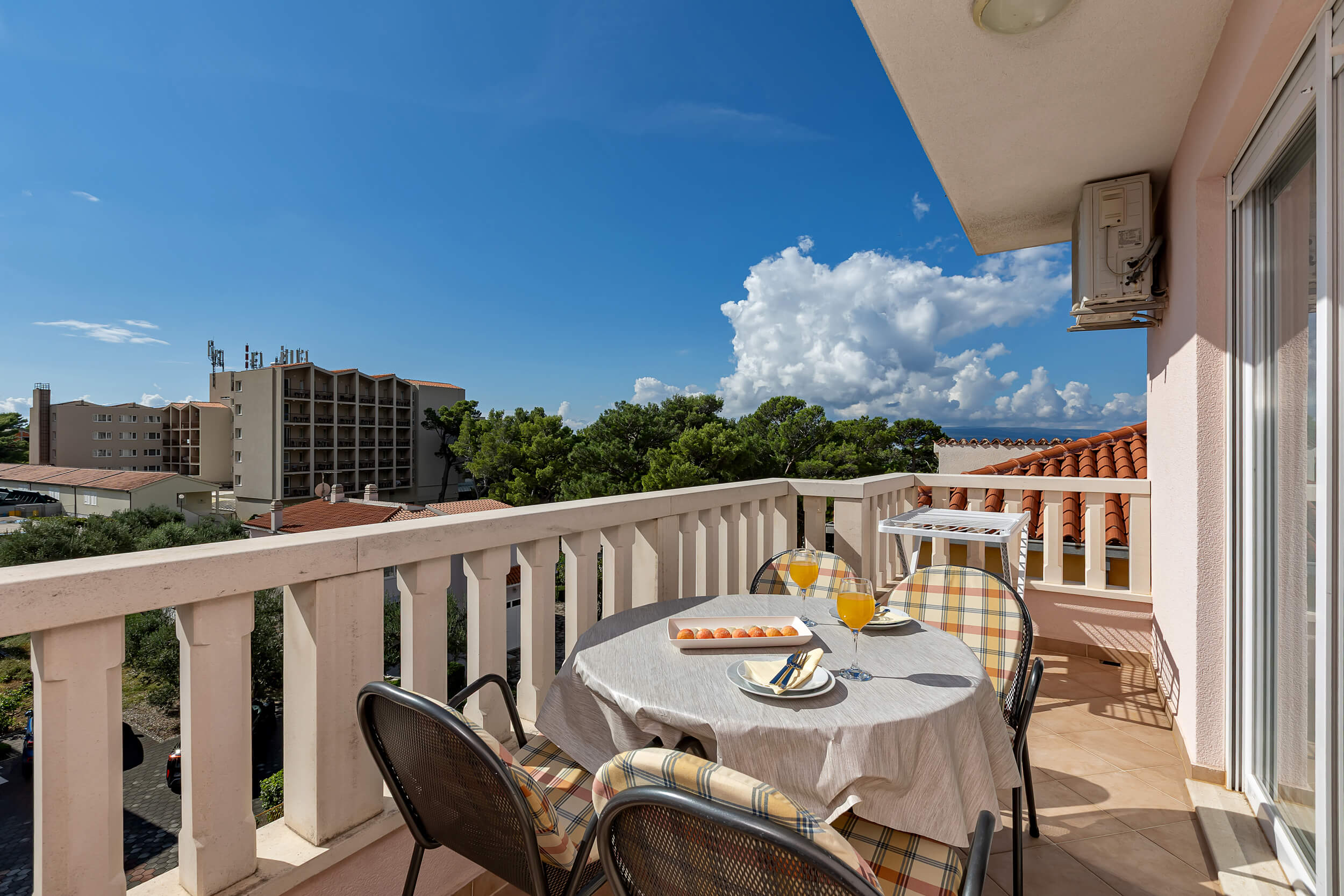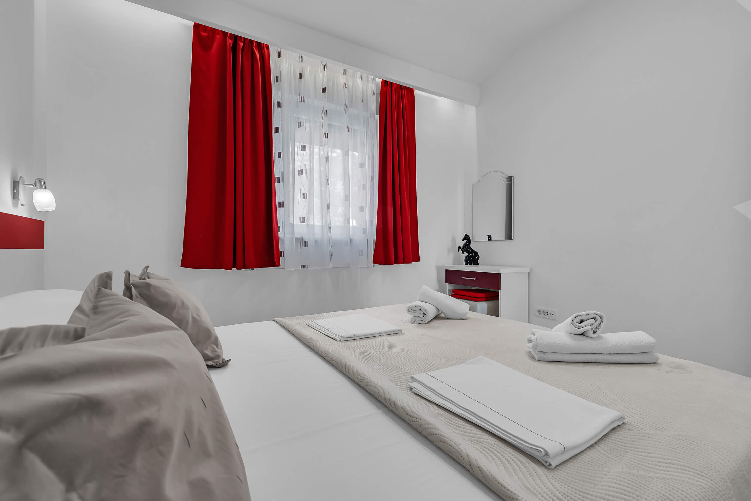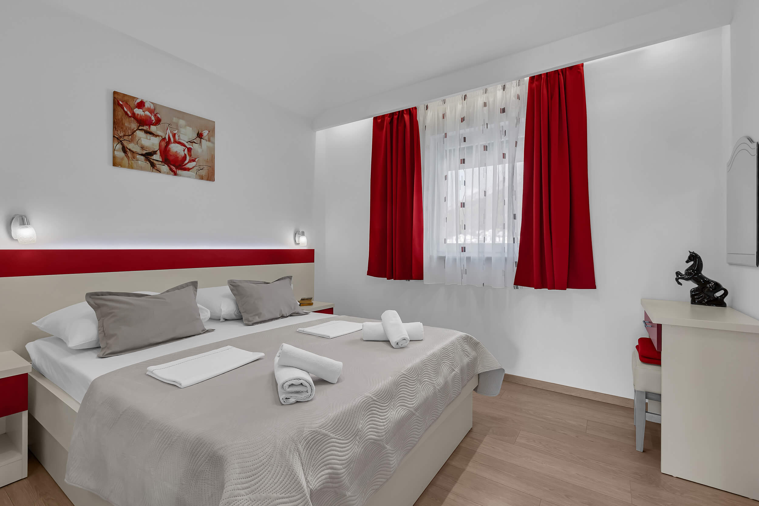 Apartman A5 *** – nalazi se na drugom katu. Sastoji se od jedne spavaće sobe s bračnim krevetom. U dnevnom boravku nalazi se kauč na razvlačenje na kojem se mogu udobno smjestiti još dvoje starije djece. Uz spavaću sobu i dnevni boravak, apartman ima modernu, potpuno opremljenu kuhinju (perilica za posuđe i dr.), blagovaonicu, potpuno opremljeno kupatilo te veliki balkon površine 9 m².
