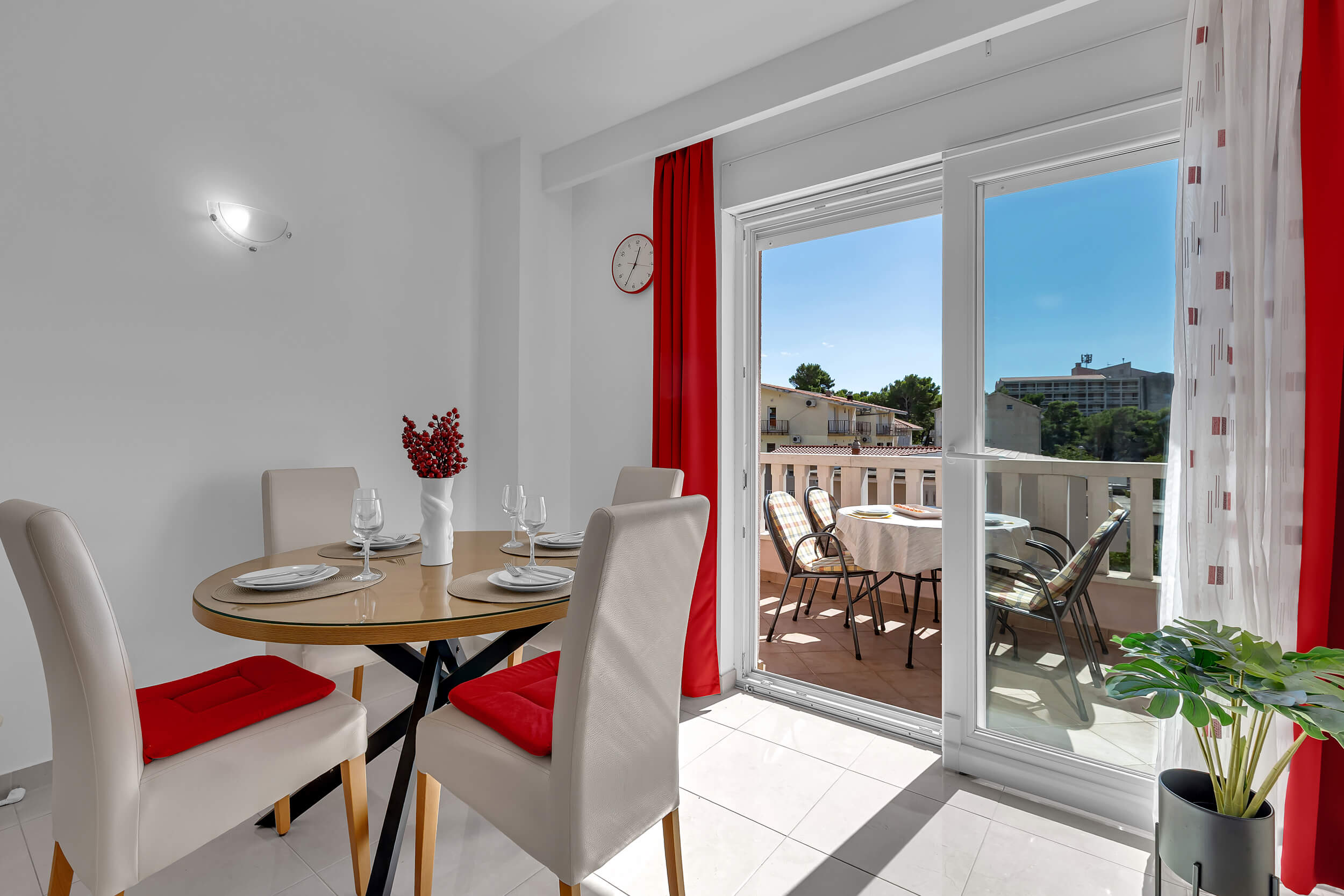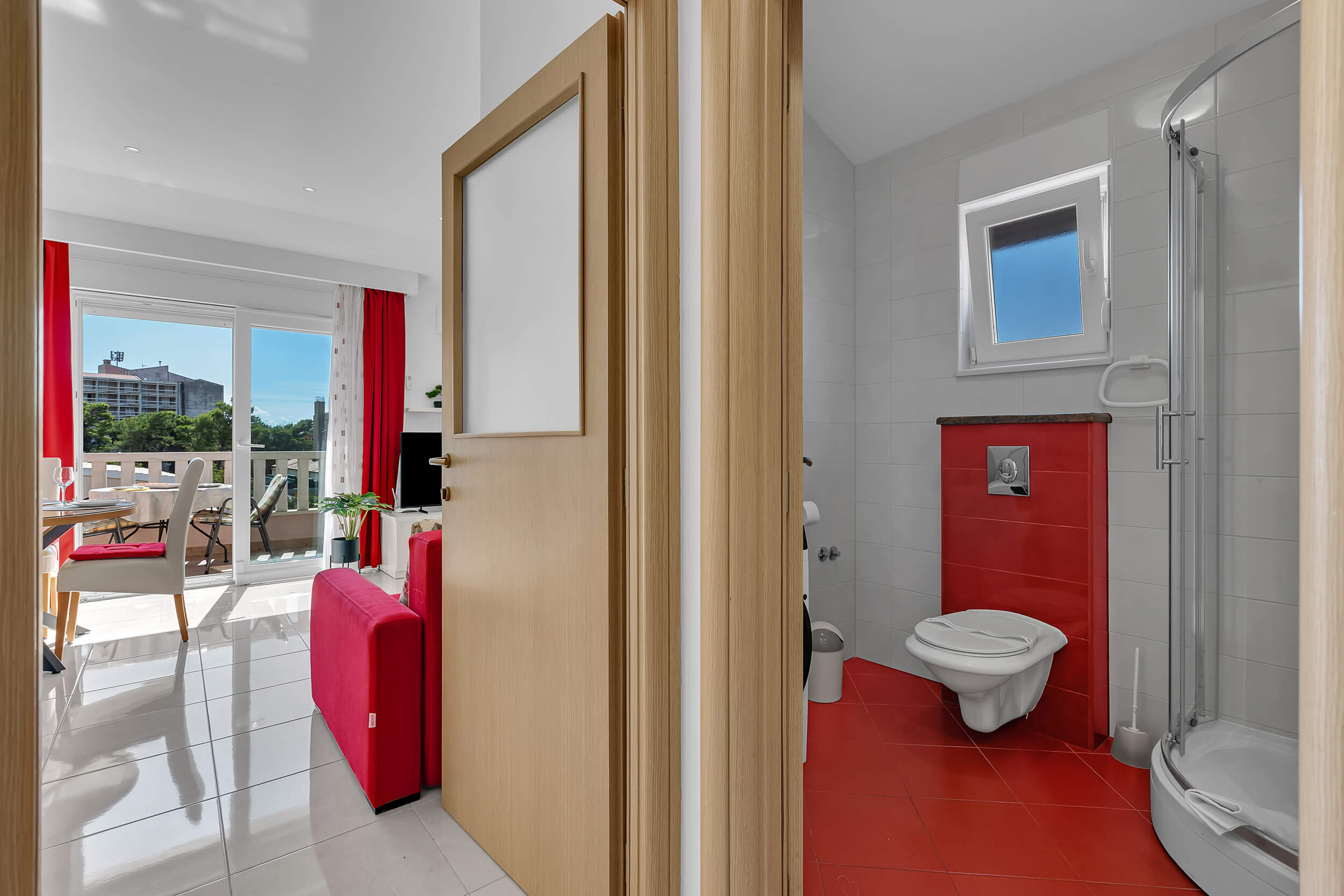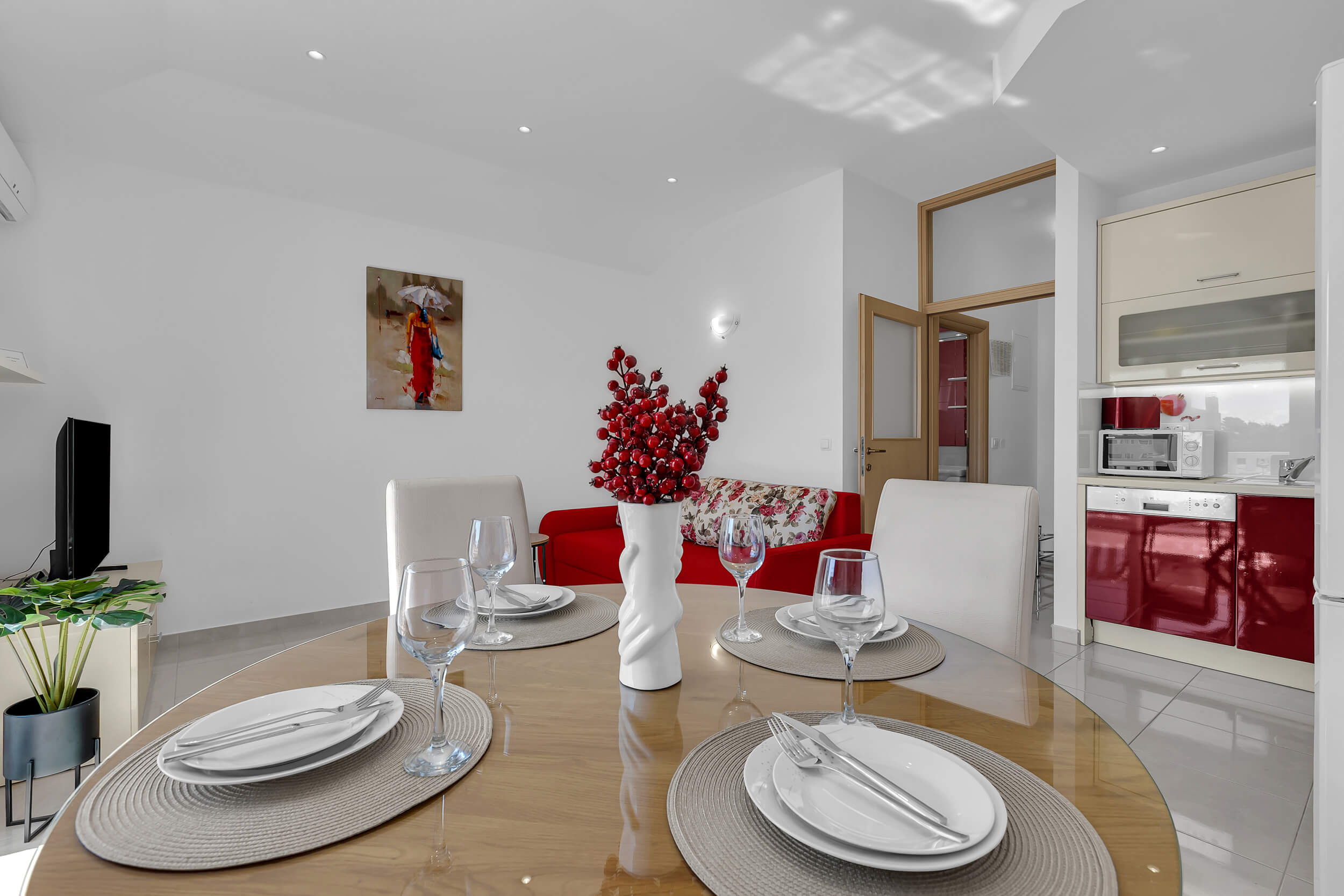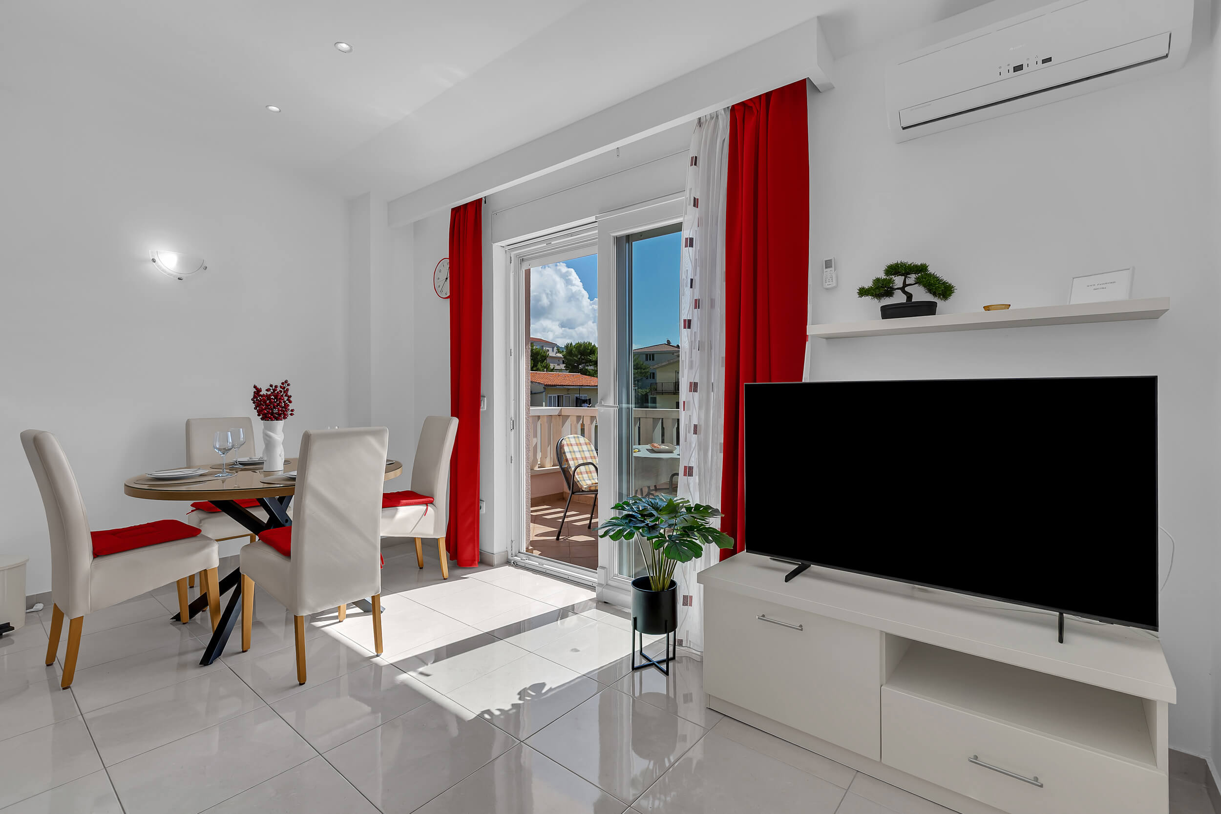 Apartman A5 *** – nalazi se na drugom katu. Sastoji se od jedne spavaće sobe s bračnim krevetom. U dnevnom boravku nalazi se kauč na razvlačenje na kojem se mogu udobno smjestiti još dvoje starije djece. Uz spavaću sobu i dnevni boravak, apartman ima modernu, potpuno opremljenu kuhinju (perilica za posuđe i dr.), blagovaonicu, potpuno opremljeno kupatilo te veliki balkon površine 9 m².