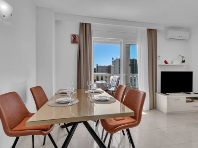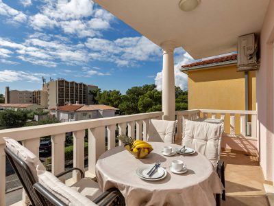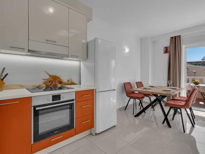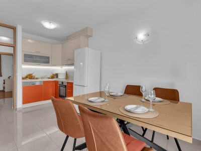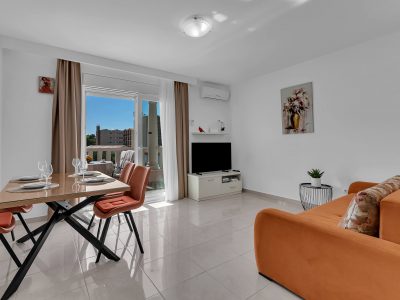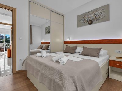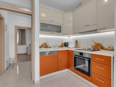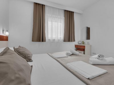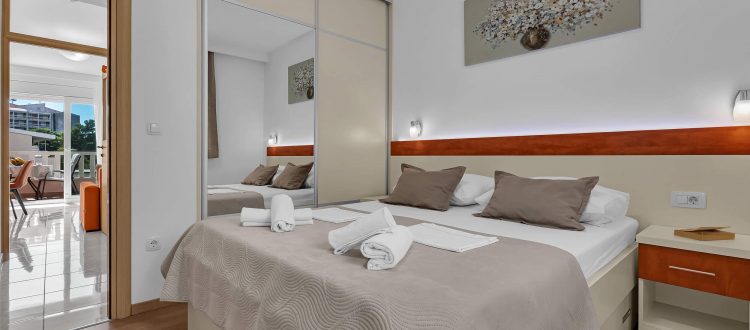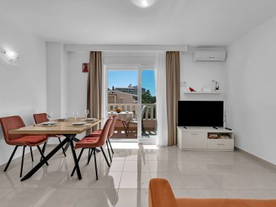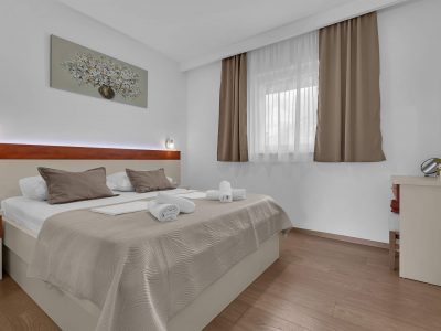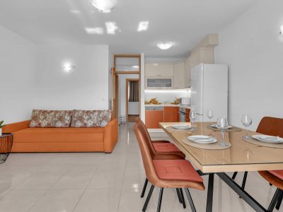 Apartment A3 *** – located on the first floor. It consists of one bedroom with a double bed. The living room features a sofa bed that can comfortably accommodate two older children. In addition to the bedroom and the living room, the apartment offers a modern, fully equipped kitchen (dishwasher, etc.), a dining area, a fully equipped bathroom, and a large 9 m² balcony.
