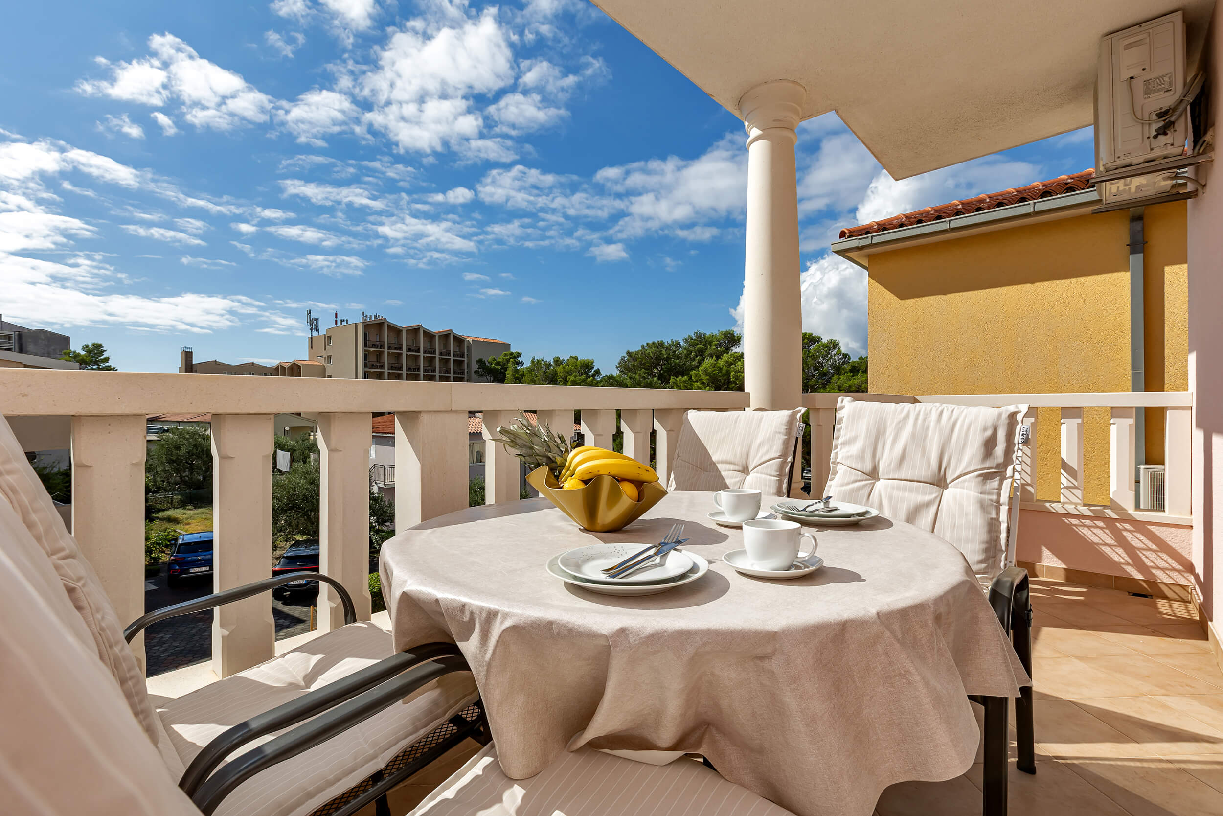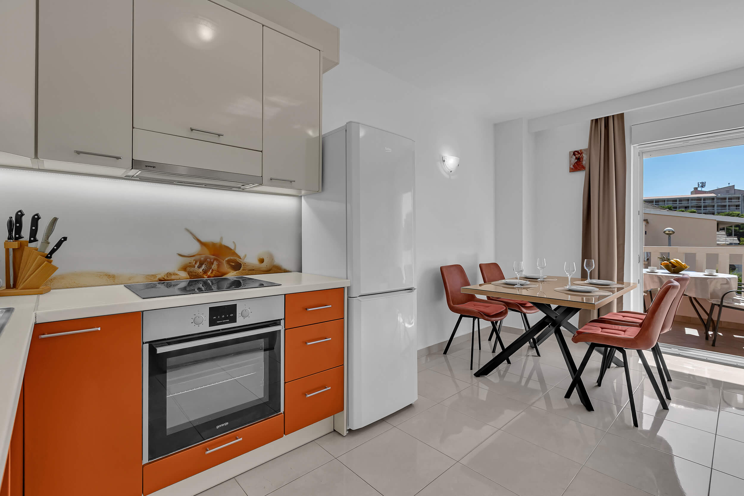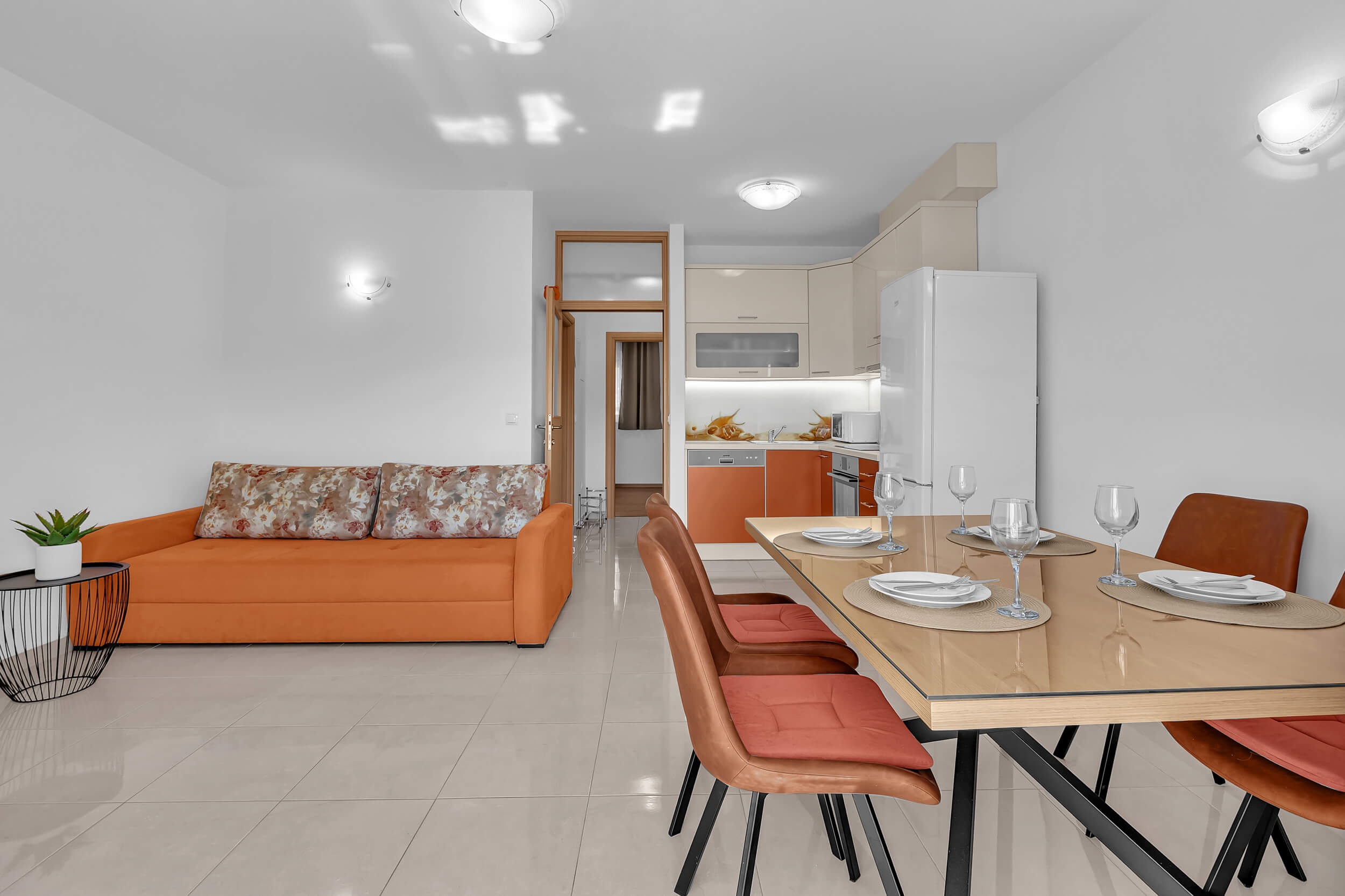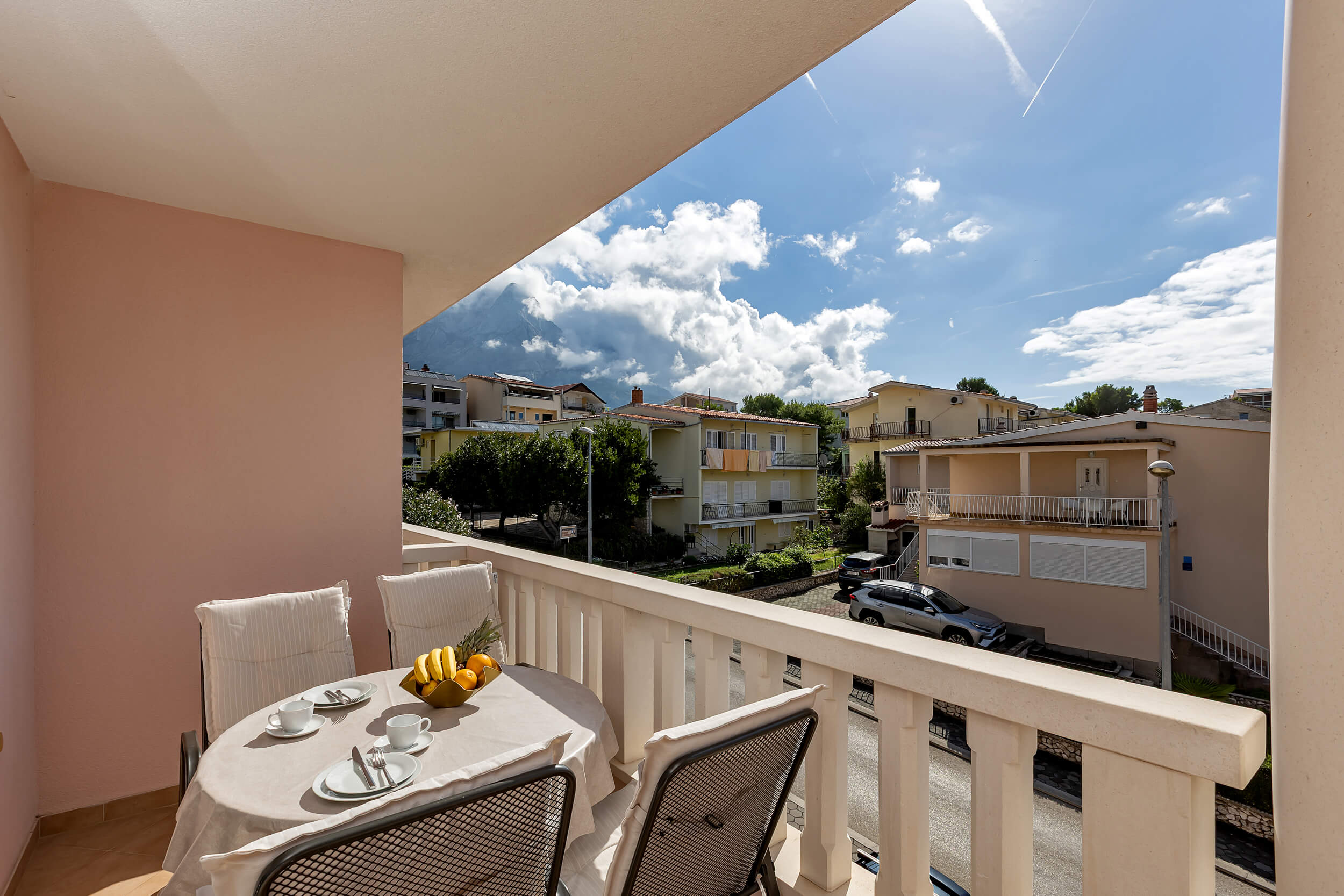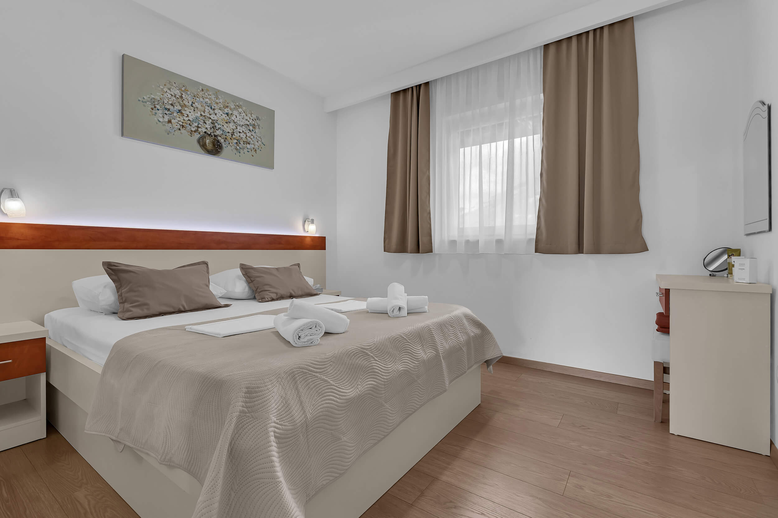 Apartment A3 *** – located on the first floor. It consists of one bedroom with a double bed. The living room features a sofa bed that can comfortably accommodate two older children. In addition to the bedroom and the living room, the apartment offers a modern, fully equipped kitchen (dishwasher, etc.), a dining area, a fully equipped bathroom, and a large 9 m² balcony.