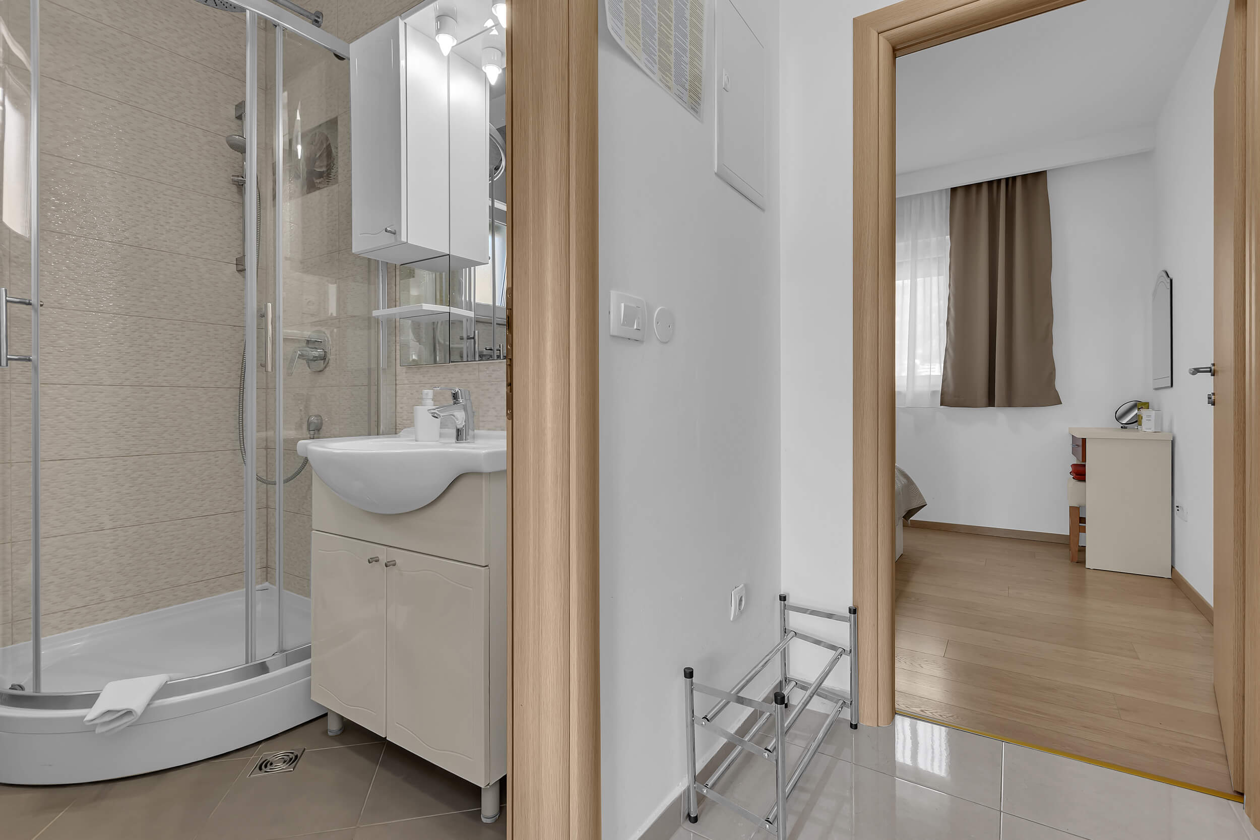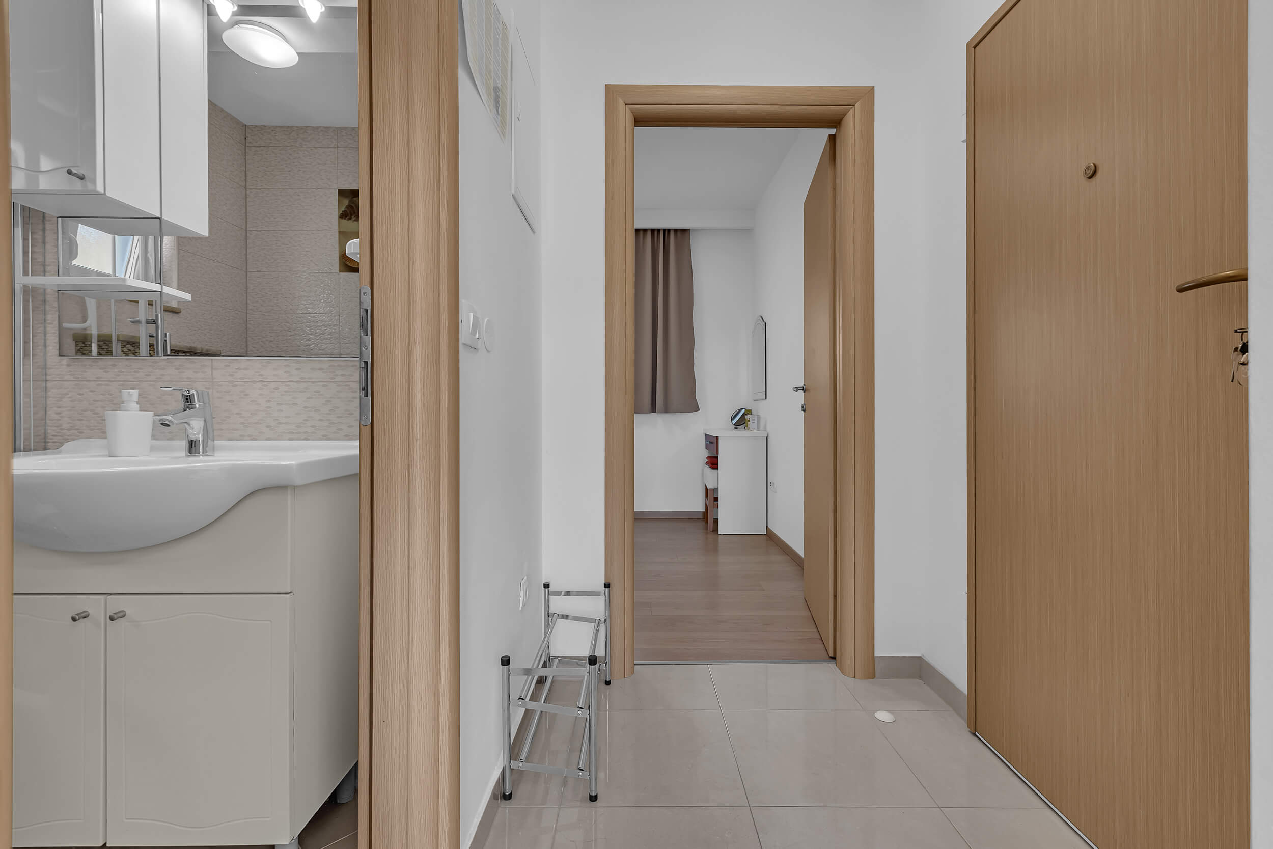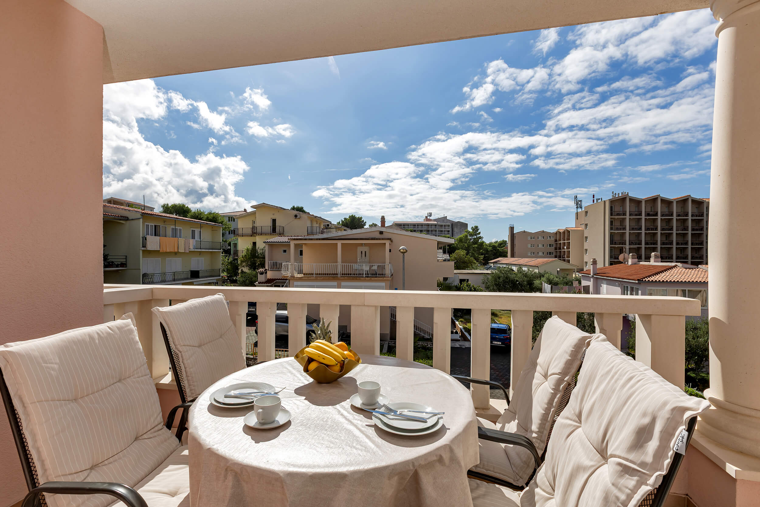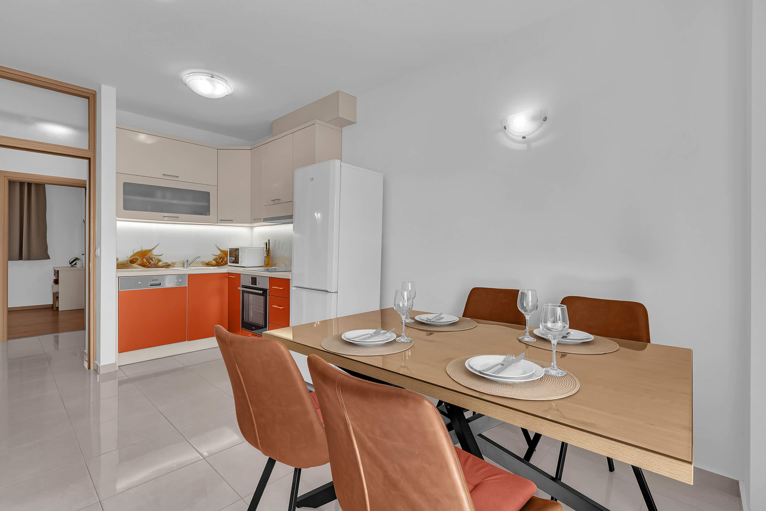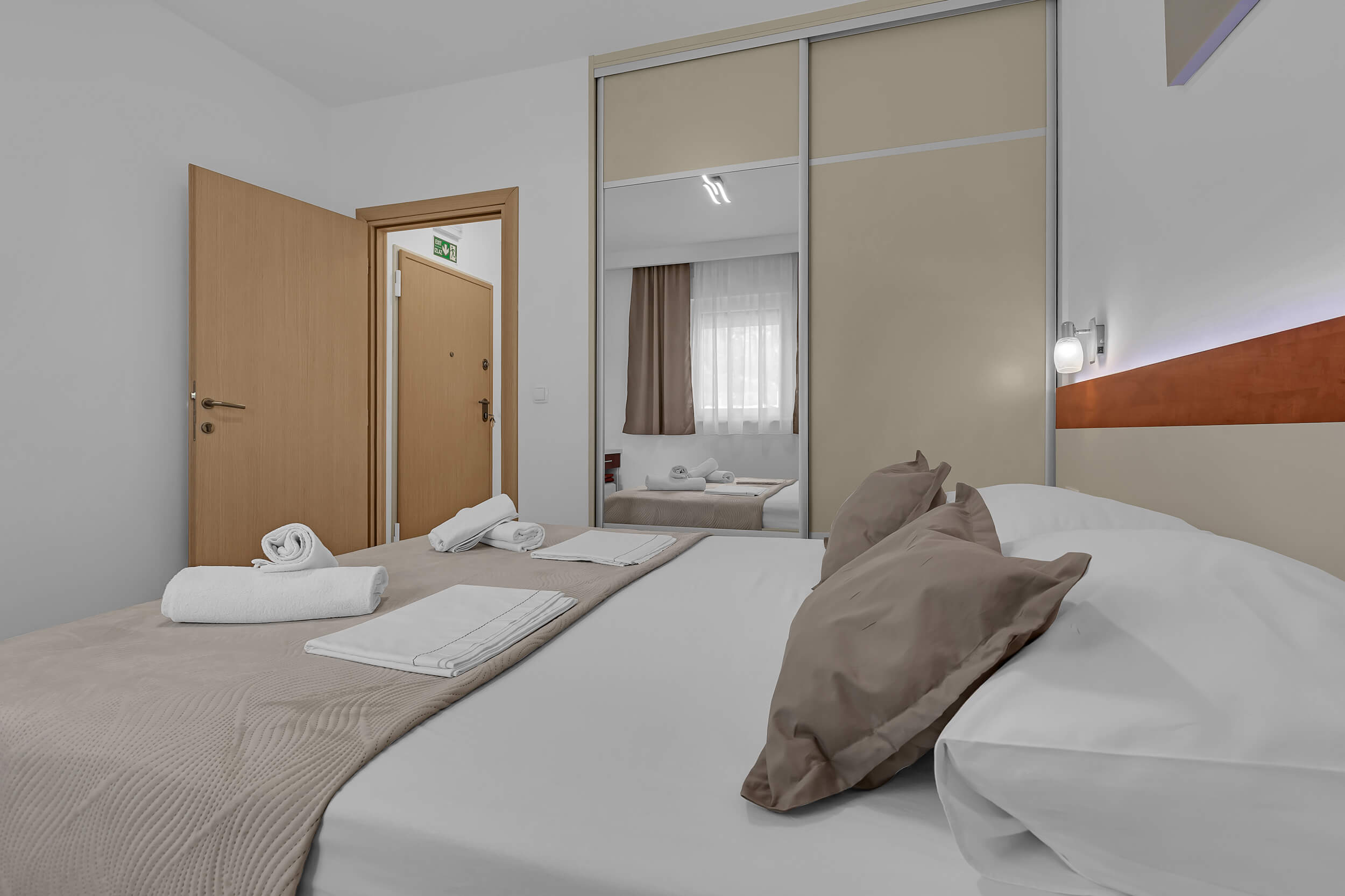 Apartment A3 *** – located on the first floor. It consists of one bedroom with a double bed. The living room features a sofa bed that can comfortably accommodate two older children. In addition to the bedroom and the living room, the apartment offers a modern, fully equipped kitchen (dishwasher, etc.), a dining area, a fully equipped bathroom, and a large 9 m² balcony.